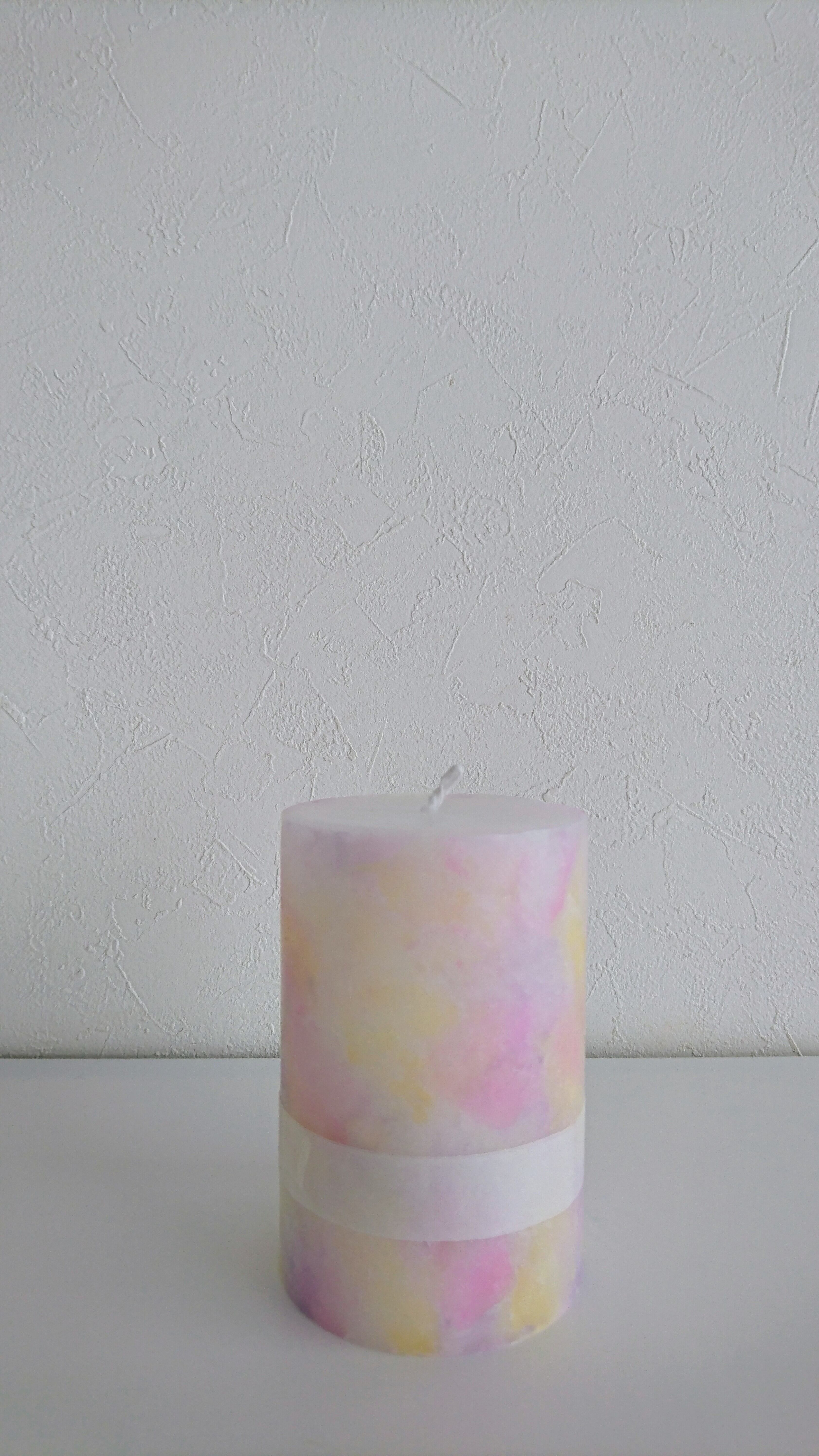 IRODORI-春 淡いピンクをメインにイエロー、パープル、色とりどりのパステルカラーが混ざり合い、優しい灯りを浮かび上がらせます。 大きさ 直径約7cm×高さ約10,5cm